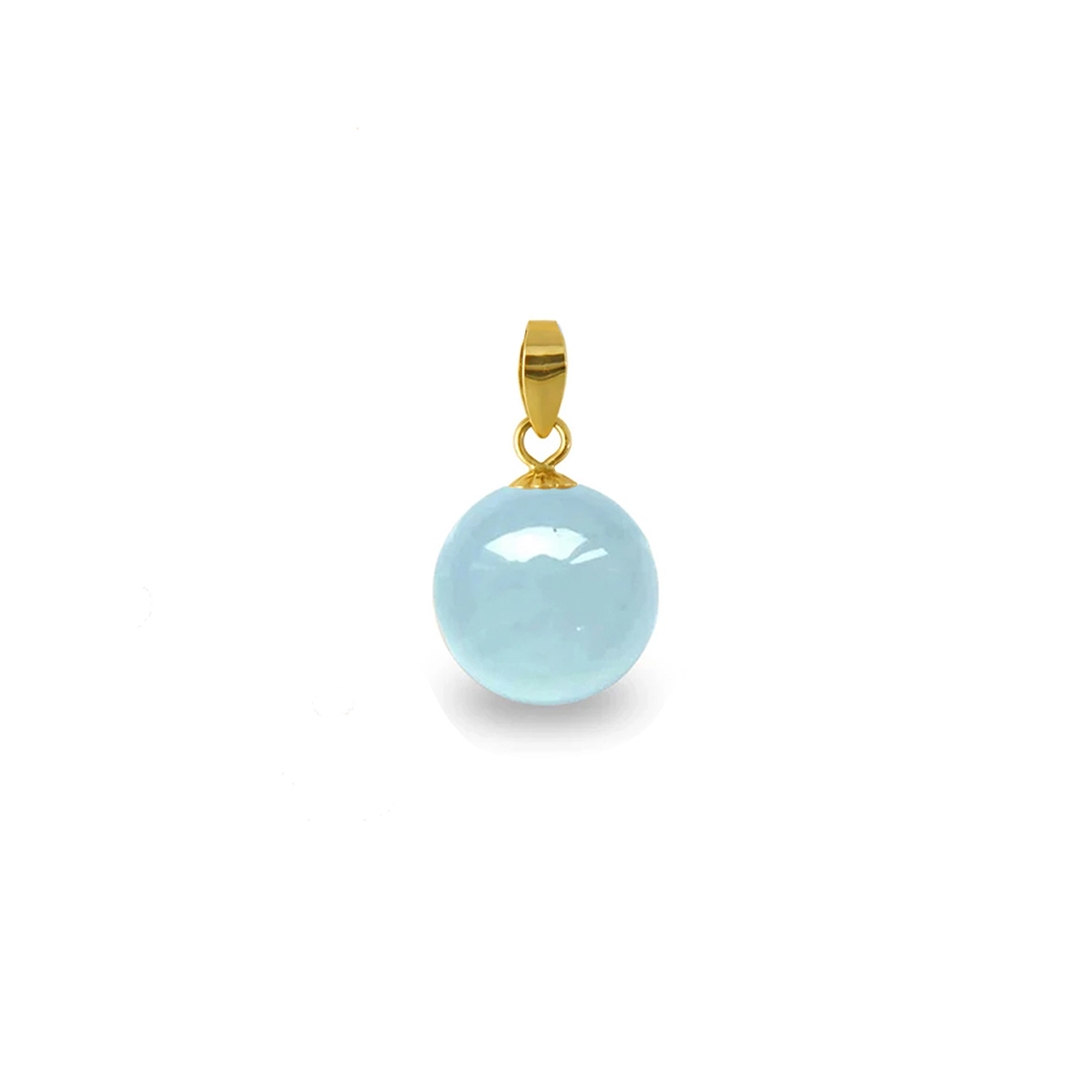• Ένα υπέροχο μενταγιόν με έναν εντυπωσιακό ημιπολύτιμο λίθο Aqua, διαμέτρου 11 χιλιοστών σε σχήμα στρογγυλό.