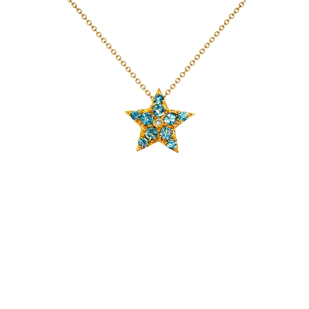 • Ένα υπέροχο μενταγιόν χρυσό 18 καρατίων σε σχήμα αστέρι.