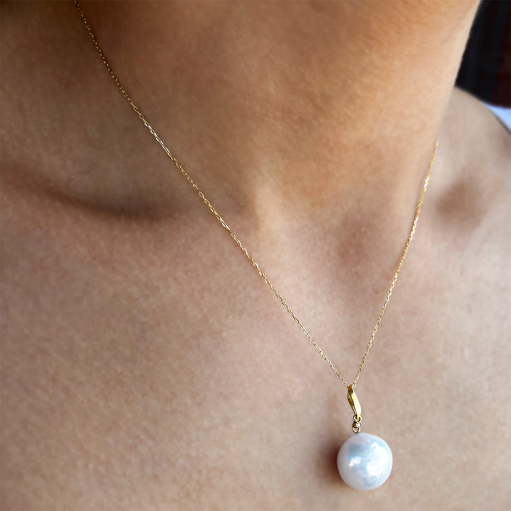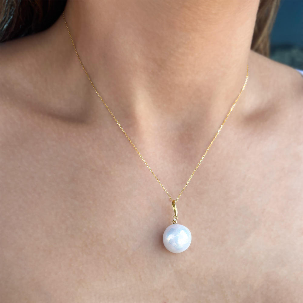 • Ένα μοναδικό μενταγιόν με λευκό ακατέργαστο μεγάλο μαργαριτάρι Fresh Water Pearl διαμέτρου 13,8 χιλιοστών με ιδιαίτερους φυσικούς ιριδισμούς, χρώμα και εξαιρετικό γυάλισμα.