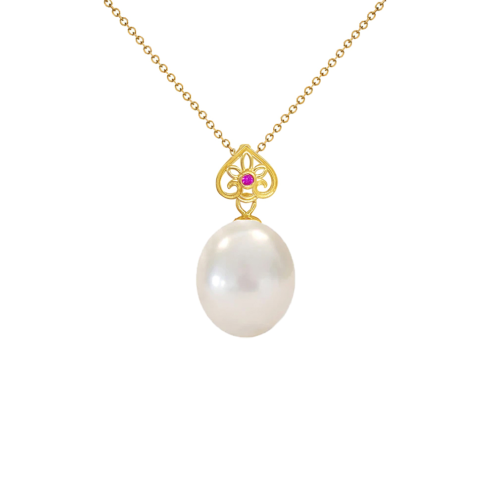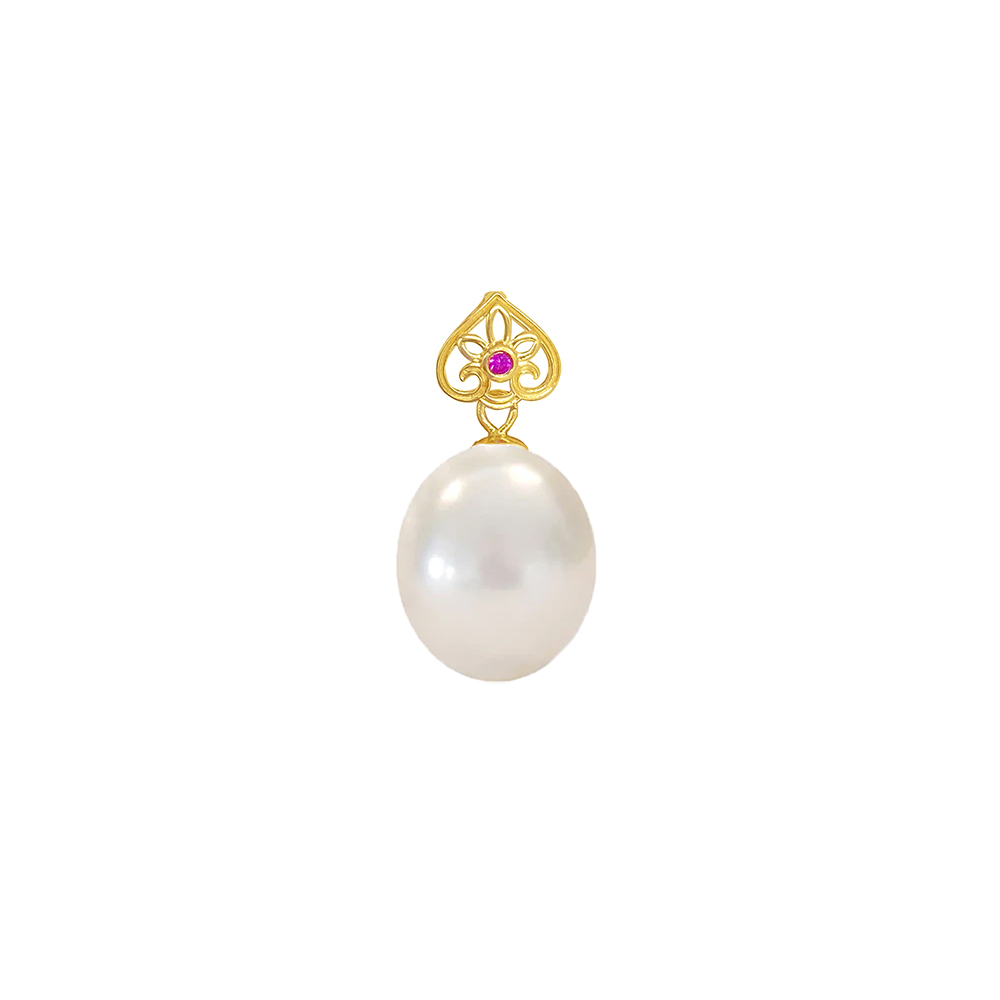 Μενταγιόν Κ18 χρυσό με μαργαριτάρι και ρουμπίνι - M125223