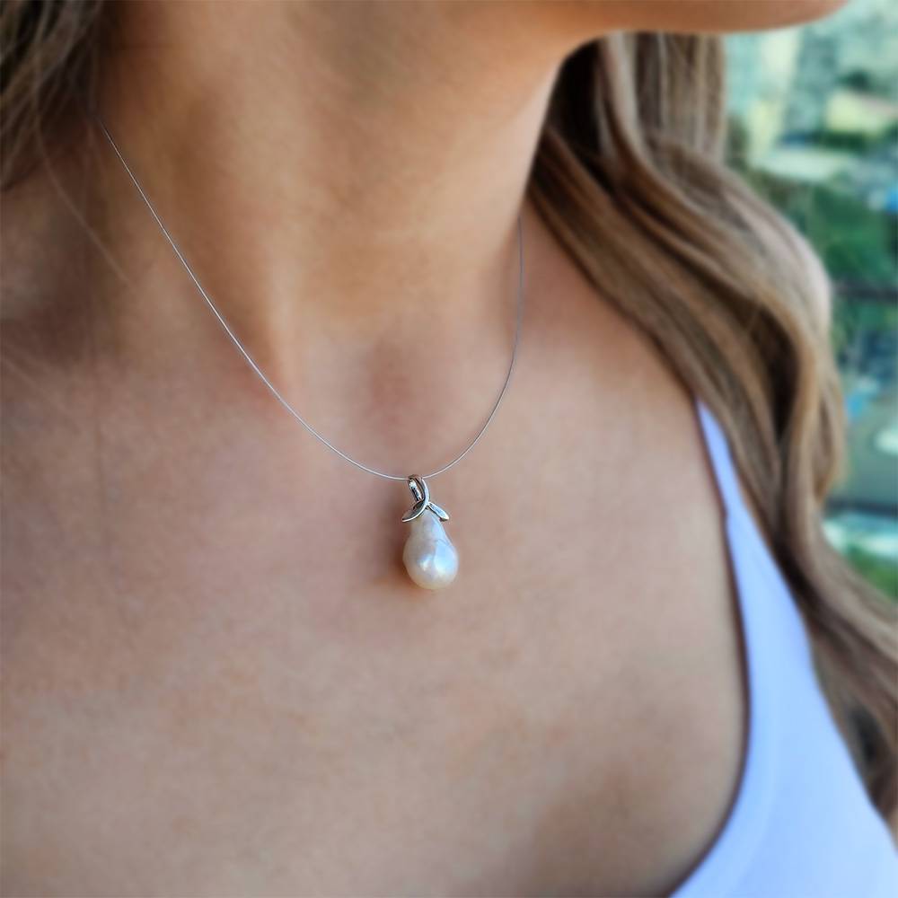 • Ένα υπέροχο μενταγιόν με λευκό μαργαριτάρι Fresh Water Pearl σε σχήμα Baroque.