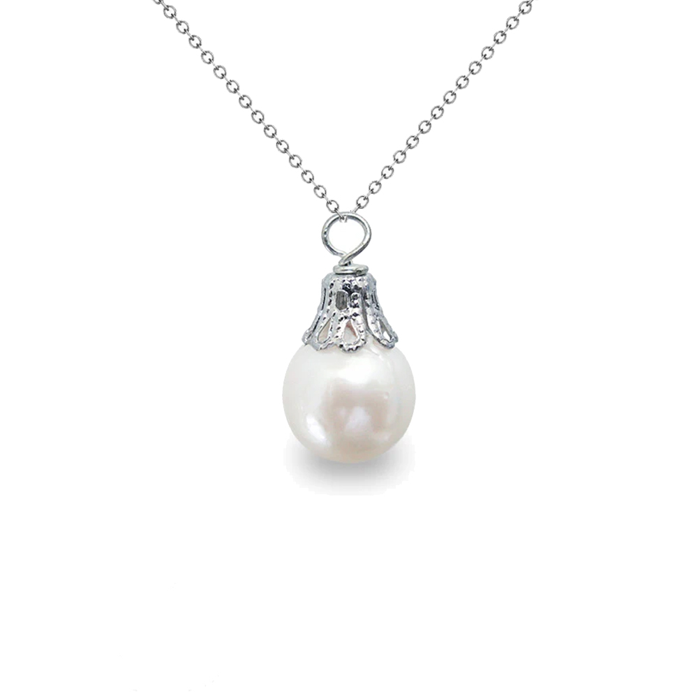 • Ένα υπέροχο μενταγιόν με λευκό μαργαριτάρι Fresh Water Pearl σε σχήμα Round (στρόγγυλο) διαμέτρου 9,0 - 10,0 χιλιοστά.