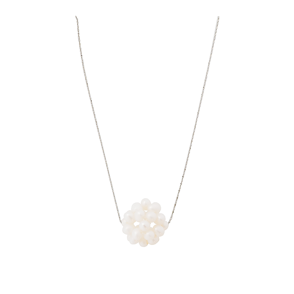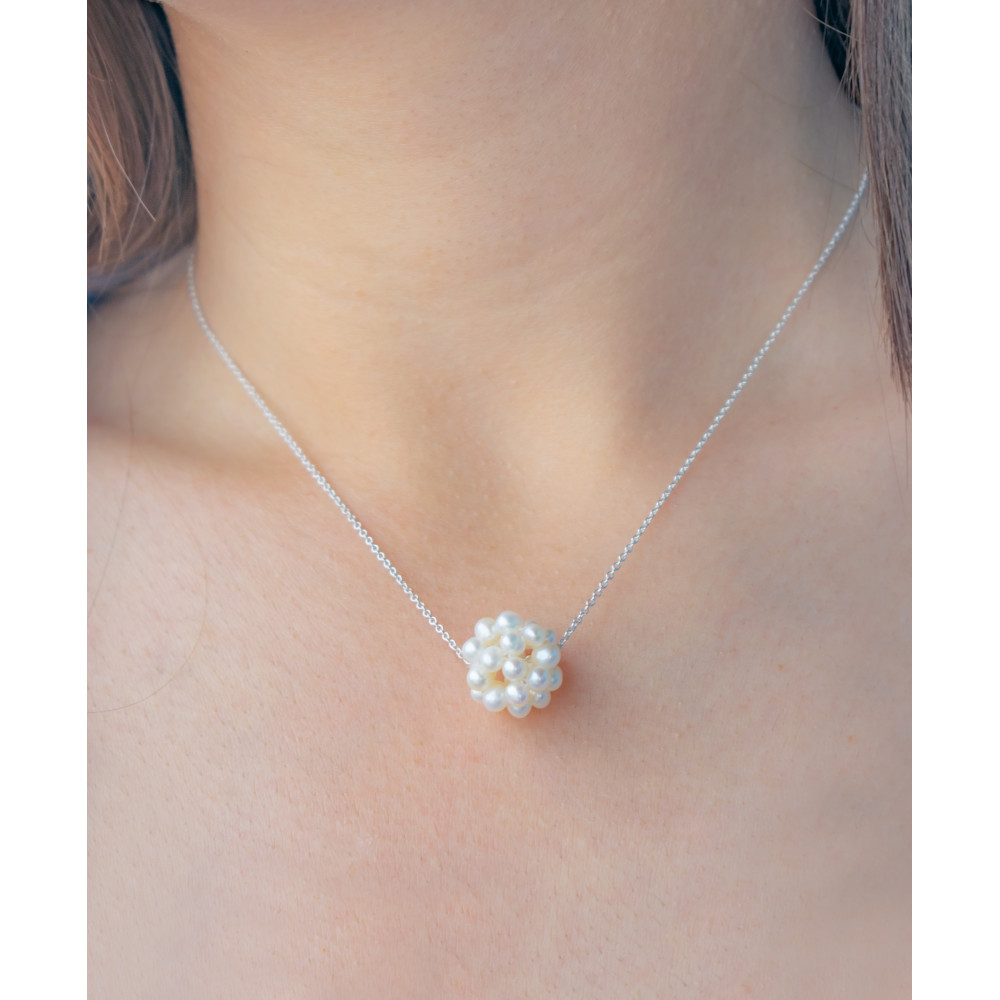 Πλεκτή μπίλια με λευκά μαργαριτάρια σε ασημένια αλυσίδα 925 - M120990
