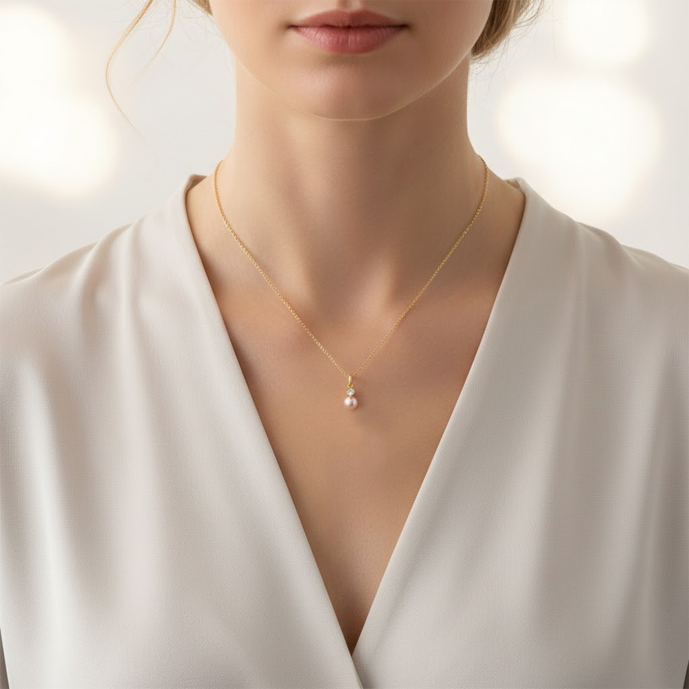 • Ένα υπέροχο μενταγιόν με λευκό, μαύρο ή σομόν μαργαριτάρι QTV Akoya Pearl, άριστης ποιότητας σε σχήμα Round (στρογγυλό), διαμέτρου 5 - 5,5 χιλιοστών.