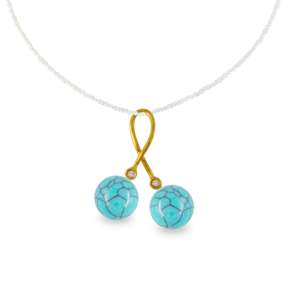 • Ένα υπέροχο μενταγιόν με ημιπολύτιμο λίθο τιρκουάζ διαμέτρου 8 χιλιοστών.