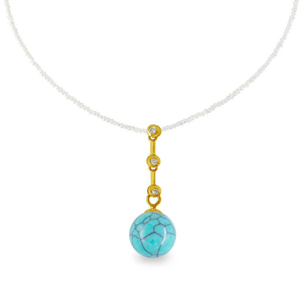 • Ένα ξεχωριστό μενταγιόν με ημιπολύτιμο λίθο τιρκουάζ διαμέτρου χιλιοστών.