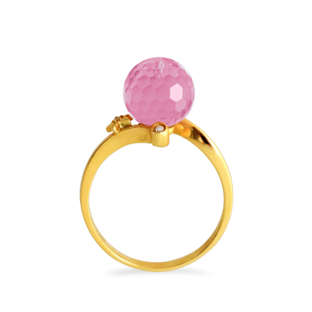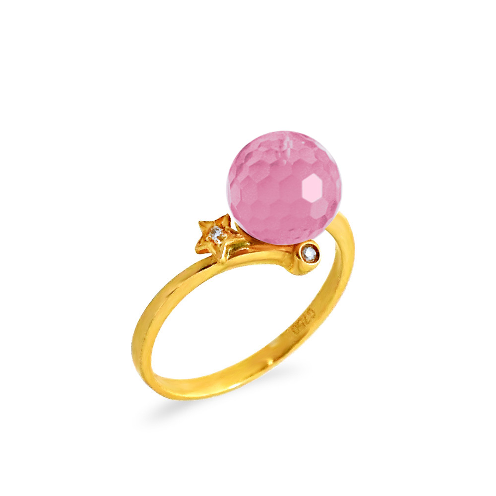 • Ένα υπέροχο δαχτυλίδι με Pink Quartz CZ διαμέτρου 10 χιλιοστών και 3 διαμάντια 0,03 καρατίων.