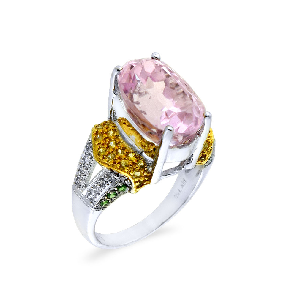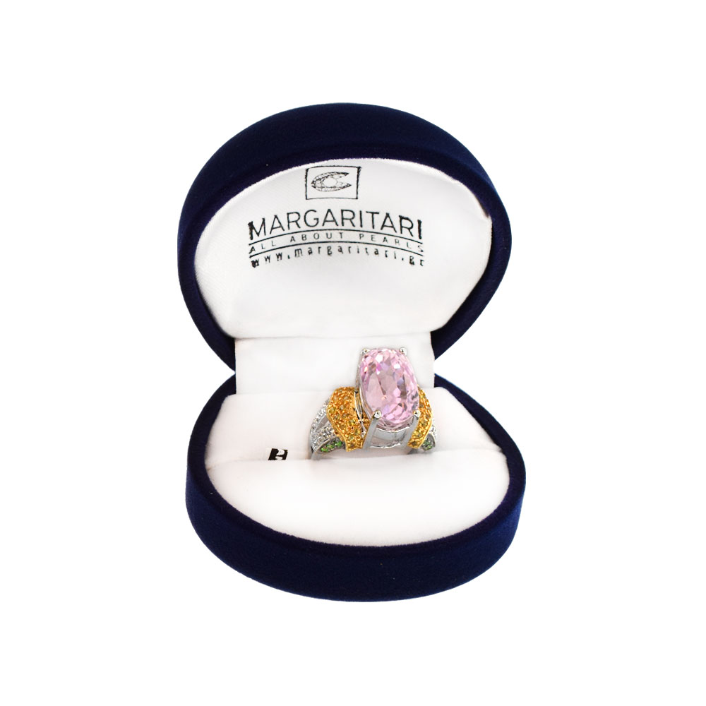 • Ένα καταπληκτικό δαχτυλίδι σε 18 καράτια λευκόχρυσου με μία λαμπερή και εντυπωσιακή Kunzite διάστασης 9 x 15 χιλιοστά.