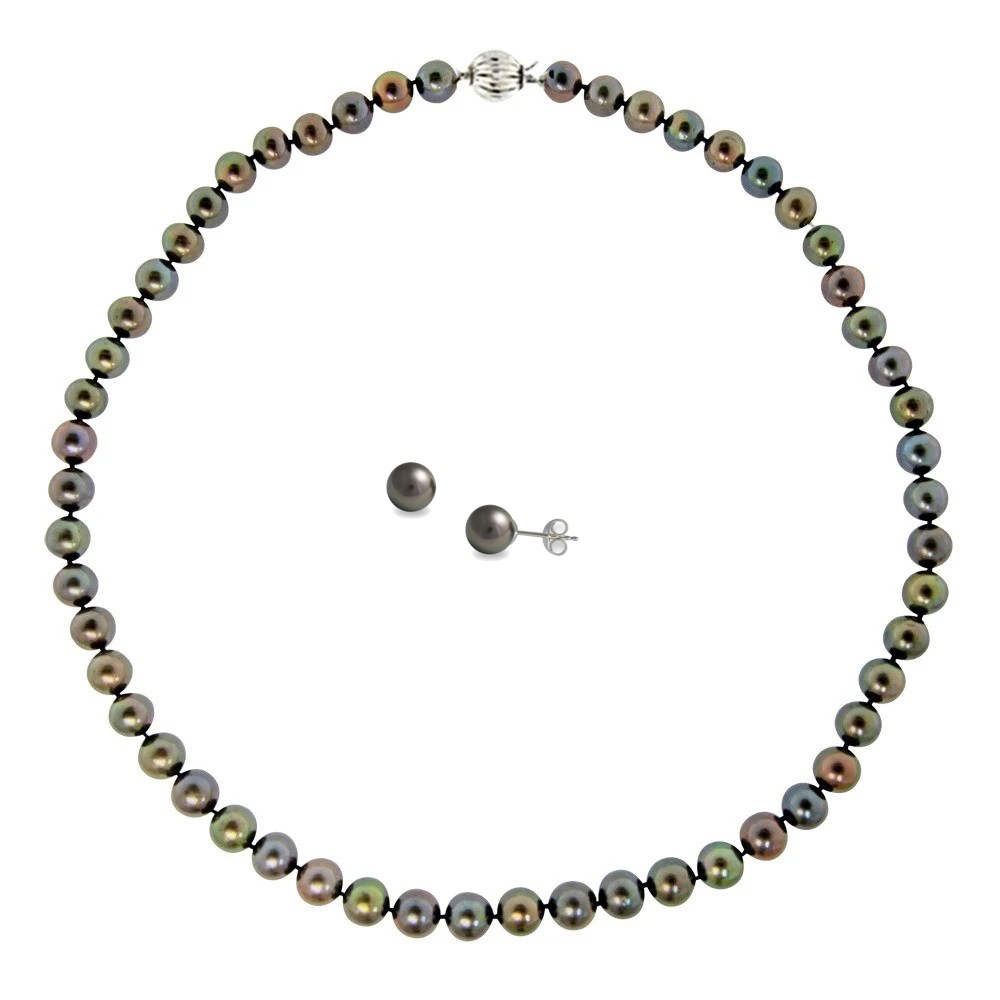 -6% Σετ κολιέ και σκουλαρίκια με μαύρα μαργαριτάρια σε ασήμι 925 - S117248BSET