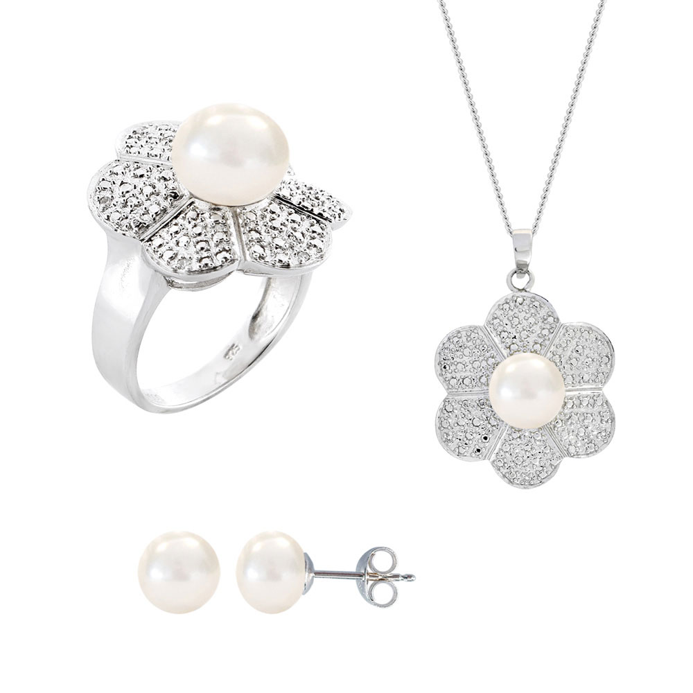 -23% Σετ δαχτυλίδι, μενταγιόν και δώρο σκουλαρίκια με λευκά μαργαριτάρια σε ασήμι 925 - M990058