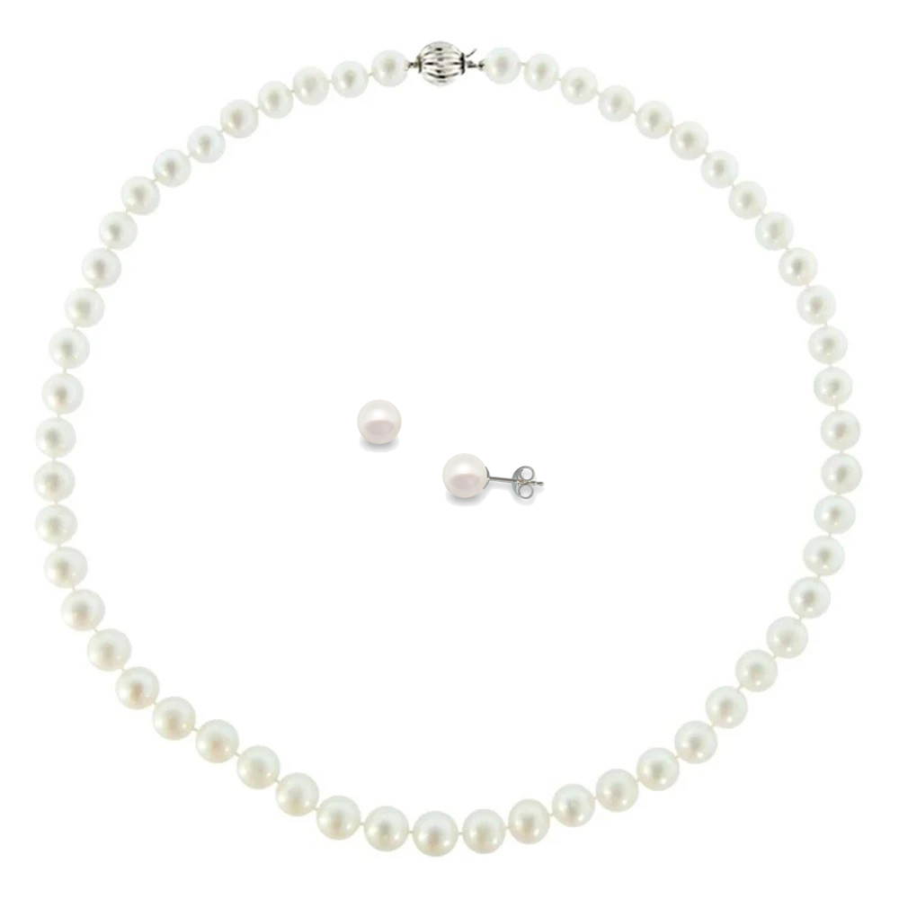 Σετ κολιέ και σκουλαρίκια με λευκά μαργαριτάρια σε ασήμι 925 - S123417SET