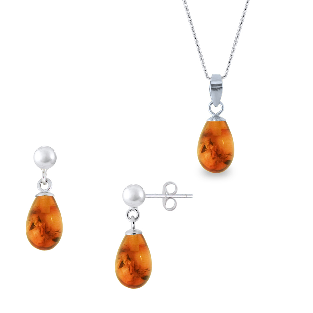 Σετ σκουλαρίκια μενταγιόν με Κεχριμπάρι σε ασημένια βάση 925 - M990121