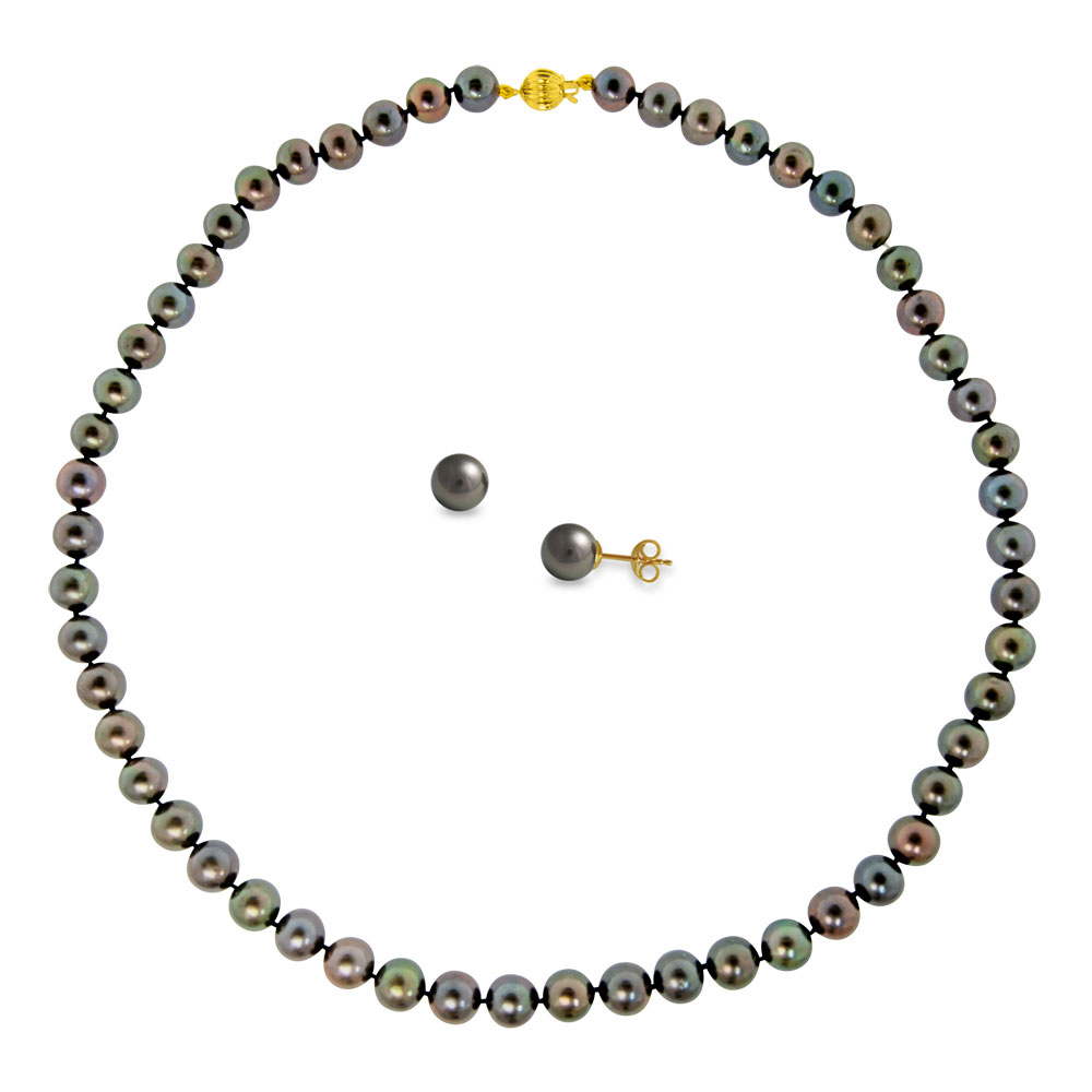 Σετ κολιέ και σκουλαρίκια σε Κ14 χρυσό με μαύρα μαργαριτάρια - M990074B