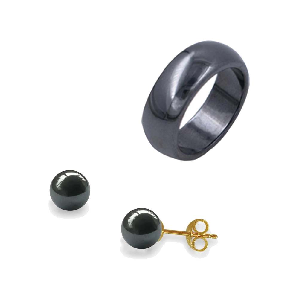 Σετ δαχτυλίδι και σκουλαρίκια χρυσά Κ14 με αιματίτη - S318635AH