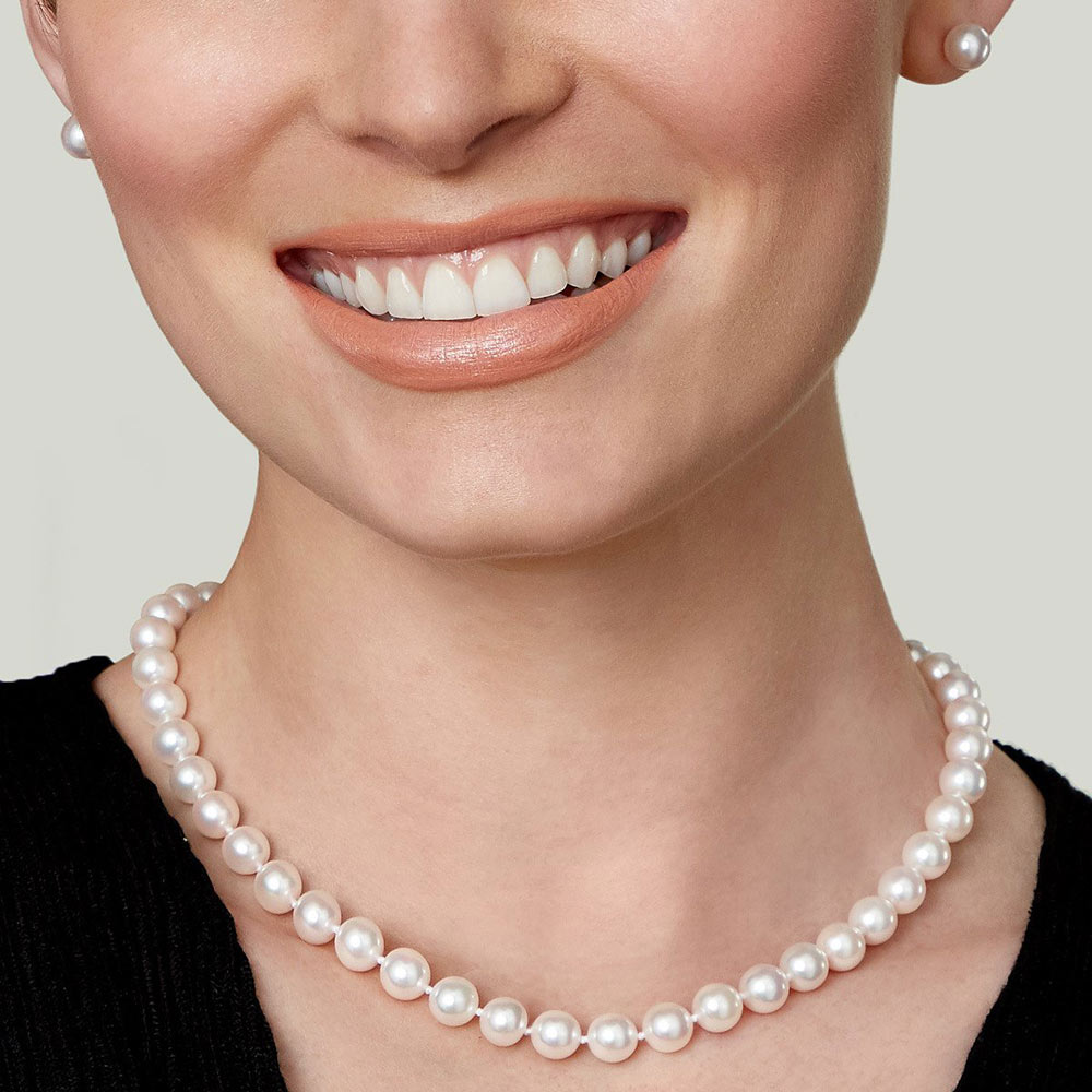 • Ένα φανταστικό κολιέ από λευκά μαργαριτάρια γλυκού νερού Fresh Water Pearl διαμέτρου 8 - χιλιοστών, άριστης ποιότητας. Διαθέτει χρυσό κούμπωμα ασφαλείας 14 καρατίων.
