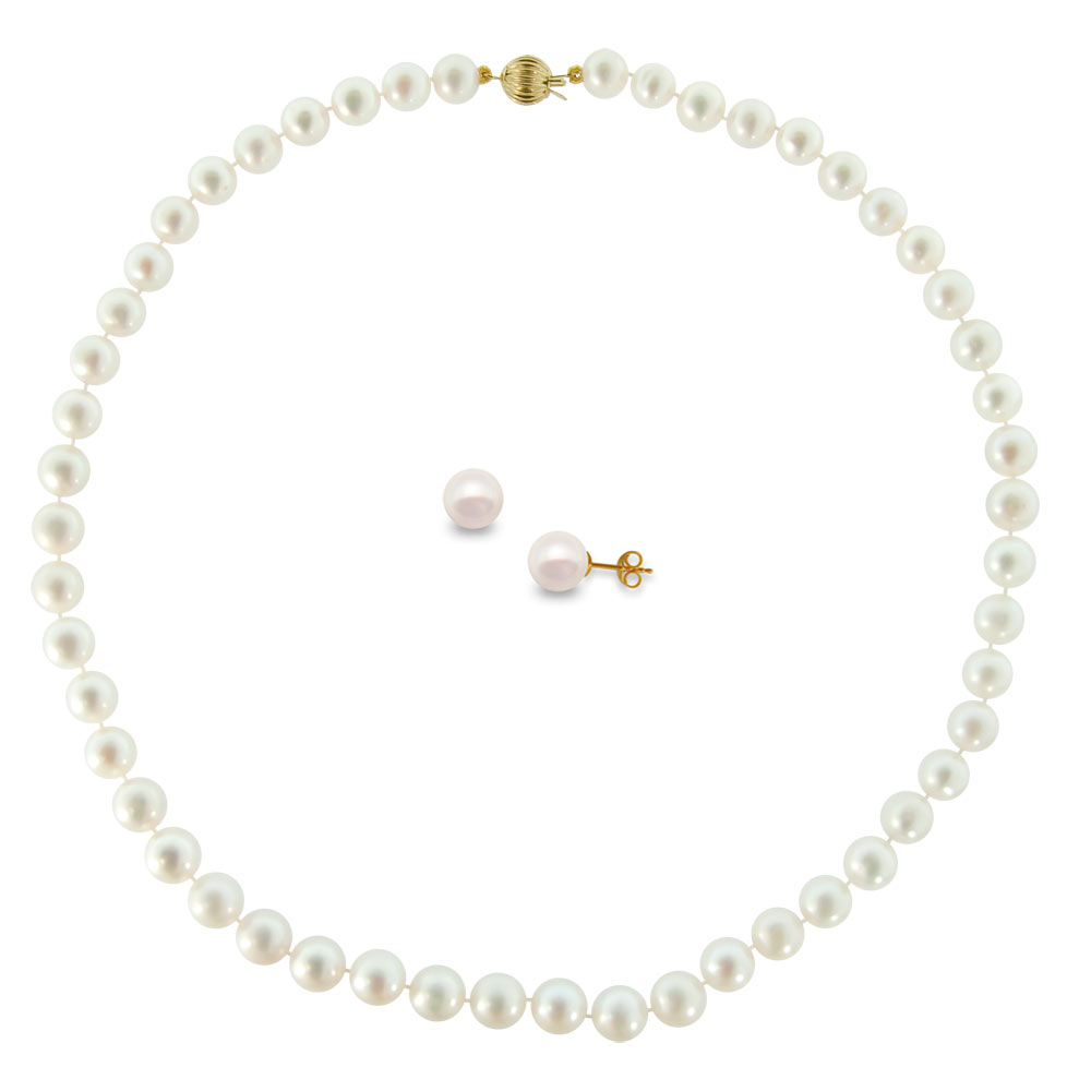 Σετ κολιέ και σκουλαρίκια σε Κ14 χρυσό με λευκά μαργαριτάρια - M990125
