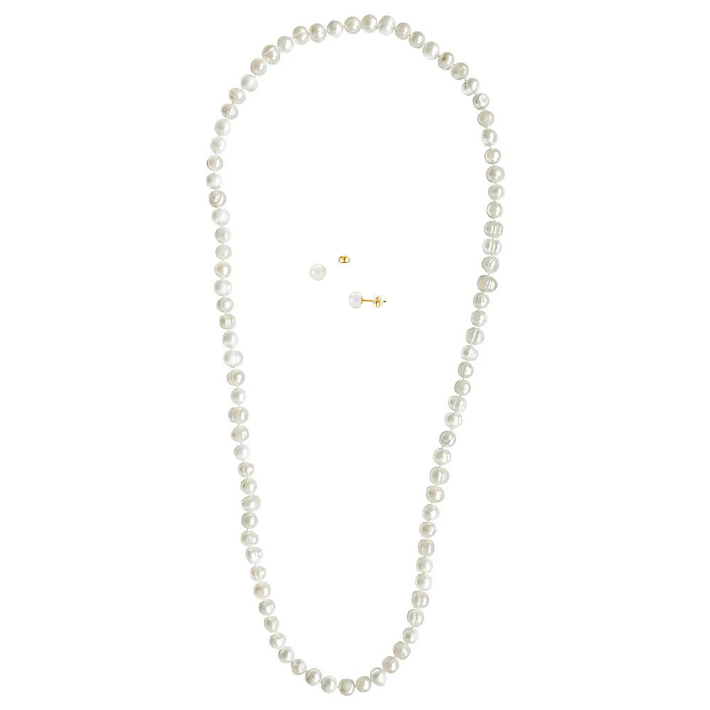 • Ένα υπέροχο κολιέ με λευκά μαργαριτάρια γλυκού νερού Fresh Water Pearl διαμέτρου 8-9 χιλιοστών.