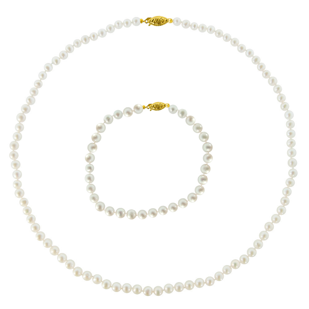 Σετ Κ14 χρυσό κολιέ και βραχιόλι με μαργαριτάρια - S990220