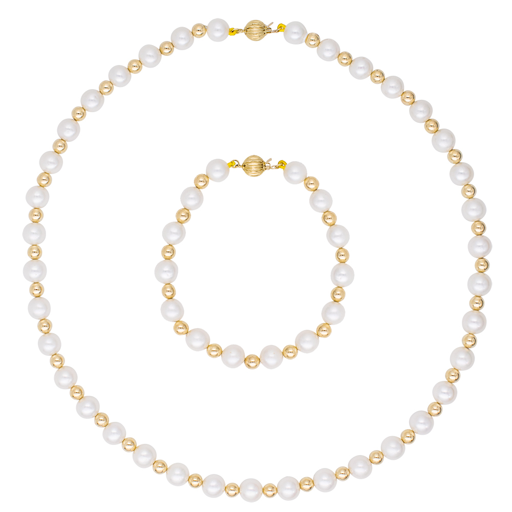 -22% Σετ κολιέ και βραχιόλι με Κ14 χρυσά στοιχεία με λευκά μαργαριτάρια - S124986