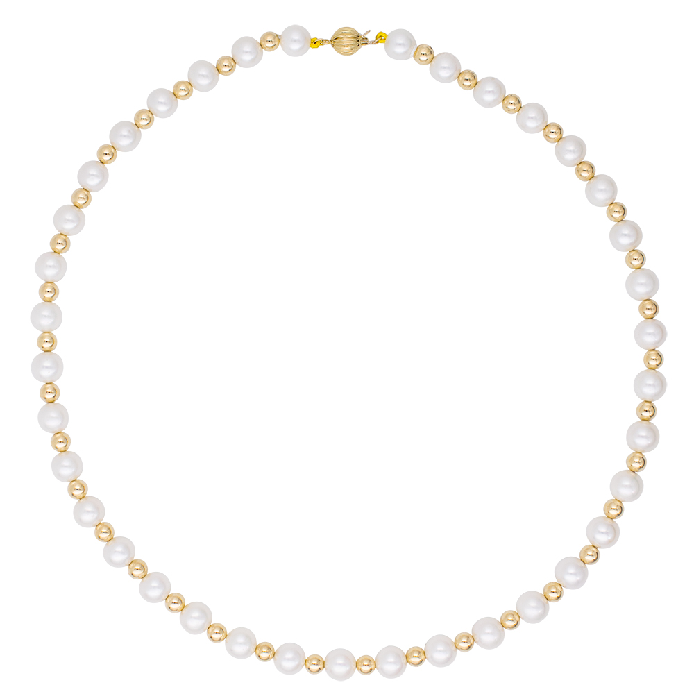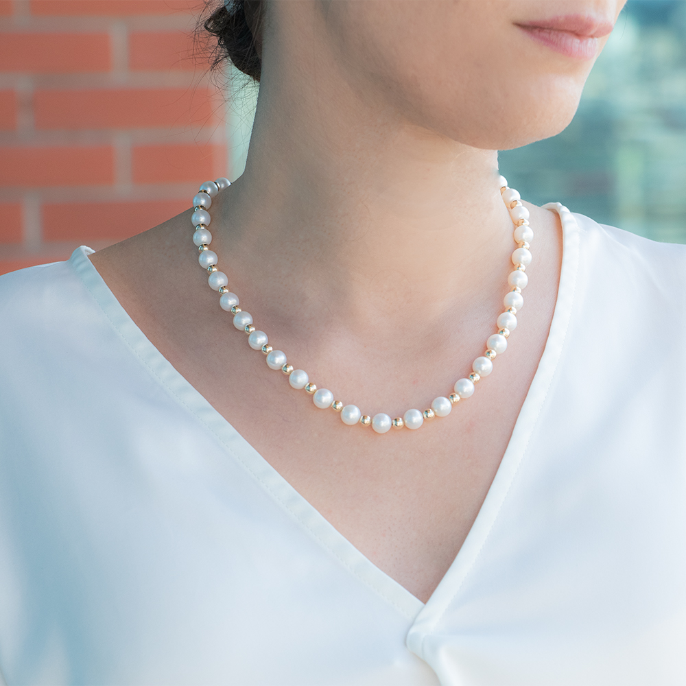 • Ένα υπέροχο κολιέ με λευκά μαργαριτάρια Fresh Water Pearl διαμέτρου 8 χιλιοστών.