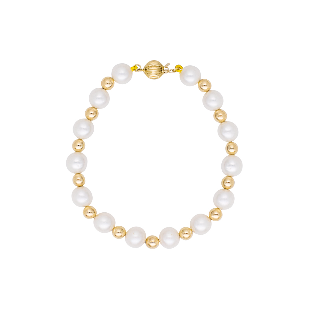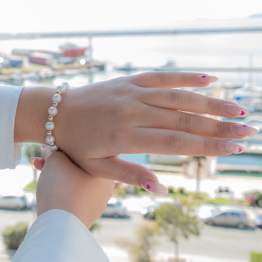 • Ένα εντυπωσιακό βραχιόλι με λευκά μαργαριτάρια γλυκού νερού Fresh Water Pearl διαμέτρου 7.5 - 8 χιλιοστών, άριστης ποιότητας