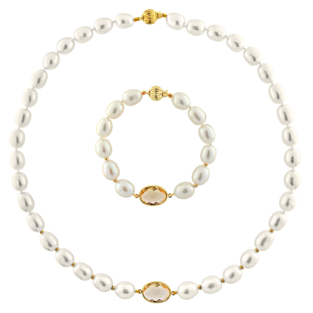 Σετ κολιέ και βραχιόλι σε Κ14 χρυσό με λευκά μαργαριτάρια - M990098