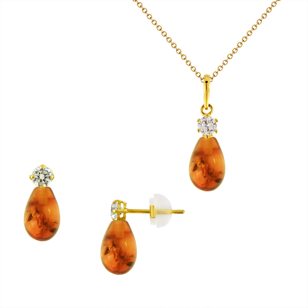 Σετ σκουλαρίκια και μενταγιόν με Amber σε χρυσό Κ14 - M990122