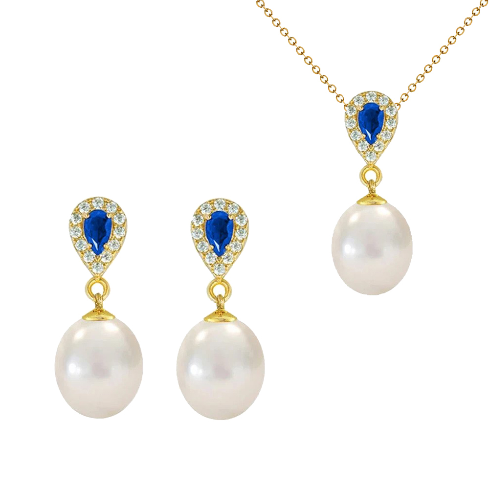 -9% Σετ σκουλαρίκια και μενταγιόν σε Κ14 χρυσό με μαργαριτάρια και ζιργκόν- S125000B