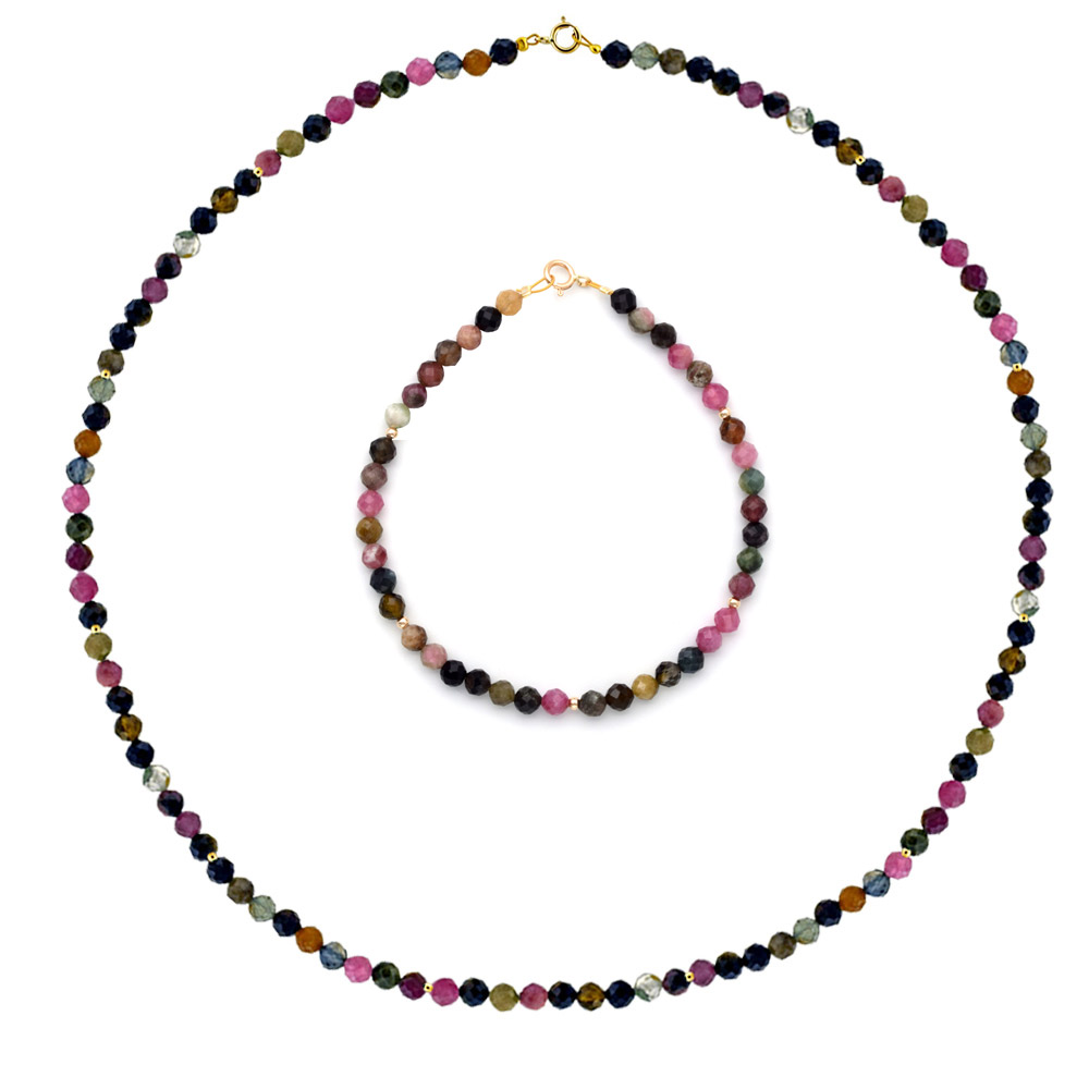 Σετ κολιέ και βραχιόλι με Κ14 χρυσό κούμπωμα και τουρμαλίνη - M990148