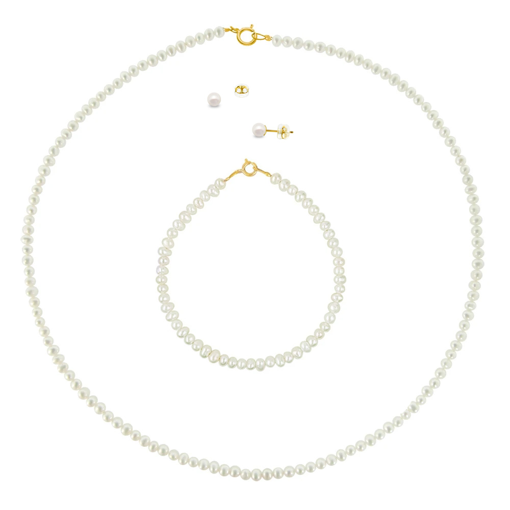 -17% Σετ κολιέ, σκουλαρίκια και βραχιόλι σε Κ14 χρυσό με λευκά μαργαριτάρια - M990035