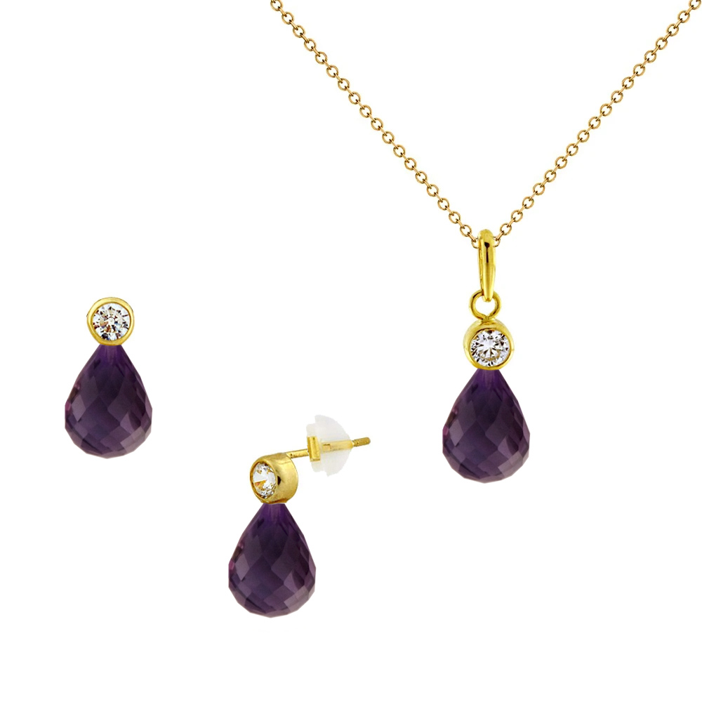 Σετ σκουλαρίκια και μενταγιόν Κ14 χρυσό με Amethyst - M124981AM