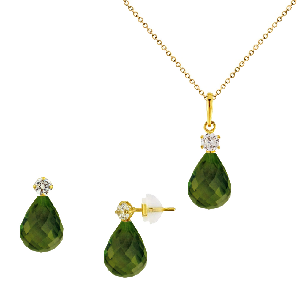 Σετ σκουλαρίκια και μενταγιόν Κ14 χρυσά με Peridot - M124980P