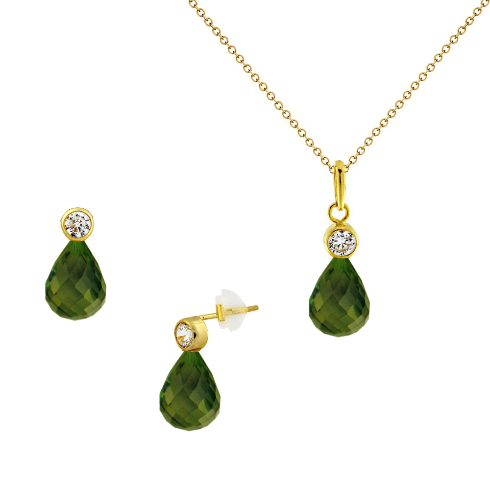 Σετ σκουλαρίκια και μενταγιόν Κ14 χρυσό με Peridot - M124981P