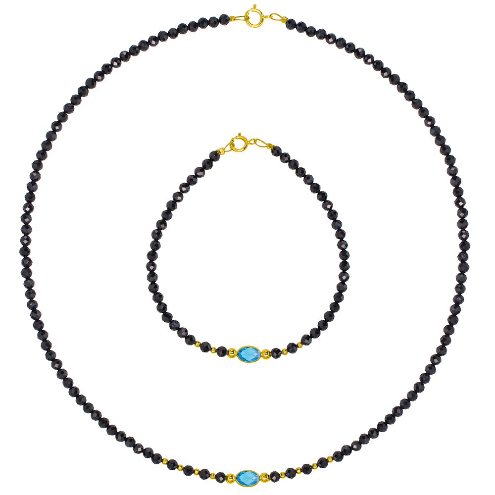 Σετ κολιέ και βραχιόλι με Κ14 χρυσά στοιχεία, spinel και blue topaz - F124245