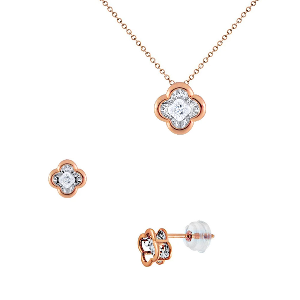 Σετ κολιέ με αλυσίδα Κ18 με μενταγιόν & σκουλαρίκια ροζ χρυσό και διαμαντια - S123502S