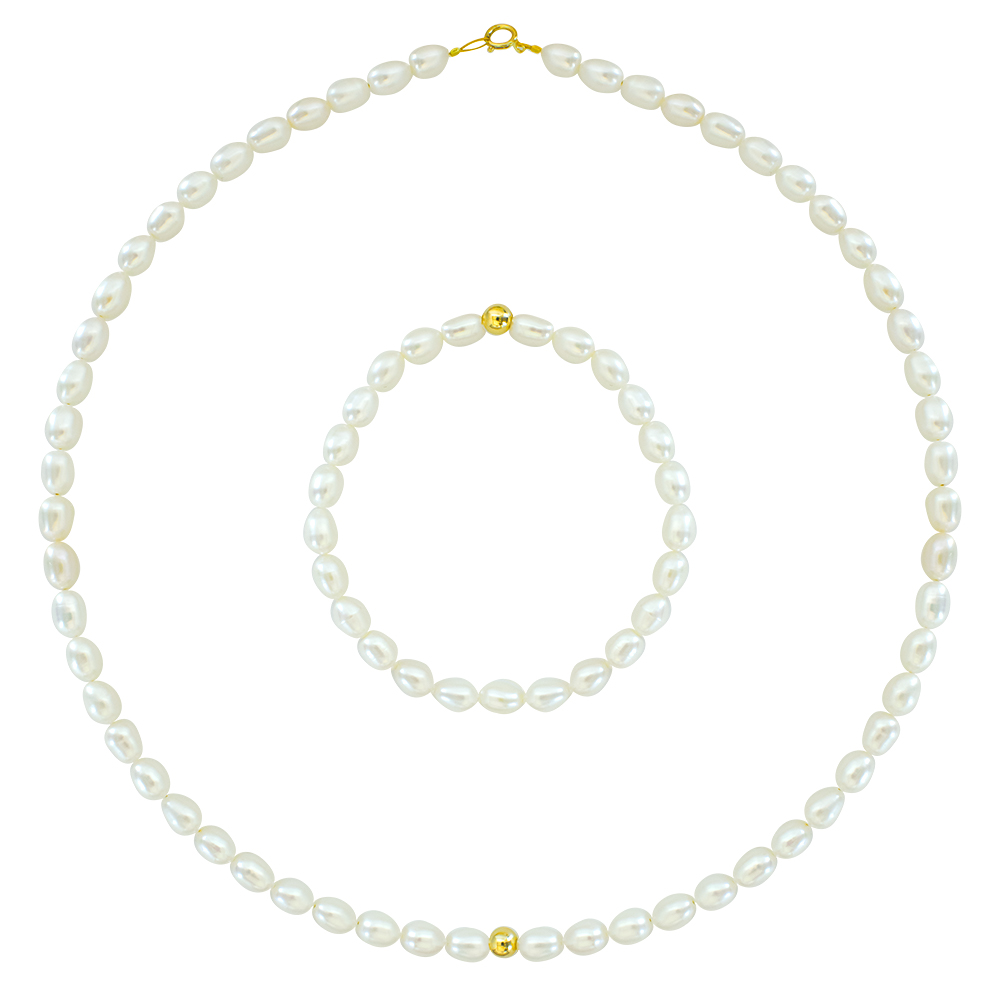 -15% Σετ κολιέ και βραχιόλι με Κ14 χρυσά στοιχεία και λευκά μαργαριτάρια - F124265
