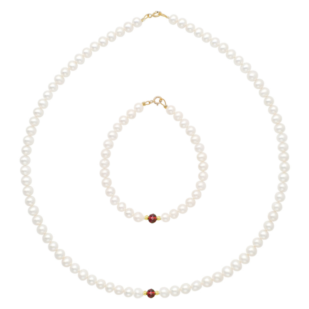 Σετ κολιέ και βραχιόλι με Κ14 χρυσά στοιχεία, μαργαριτάρια και ζιργκόν - S123993R