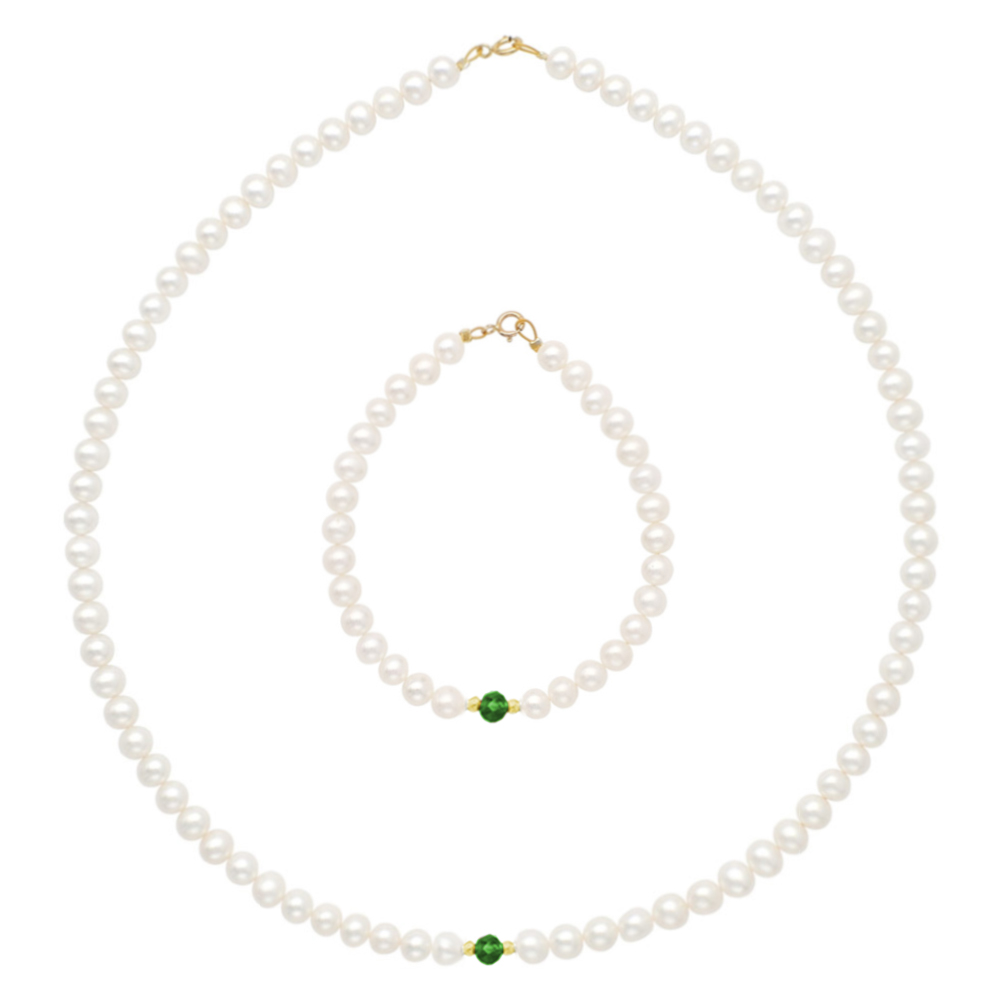 Σετ κολιέ και βραχιόλι με Κ14 χρυσά στοιχεία, μαργαριτάρια και ζιργκόν - S123993G