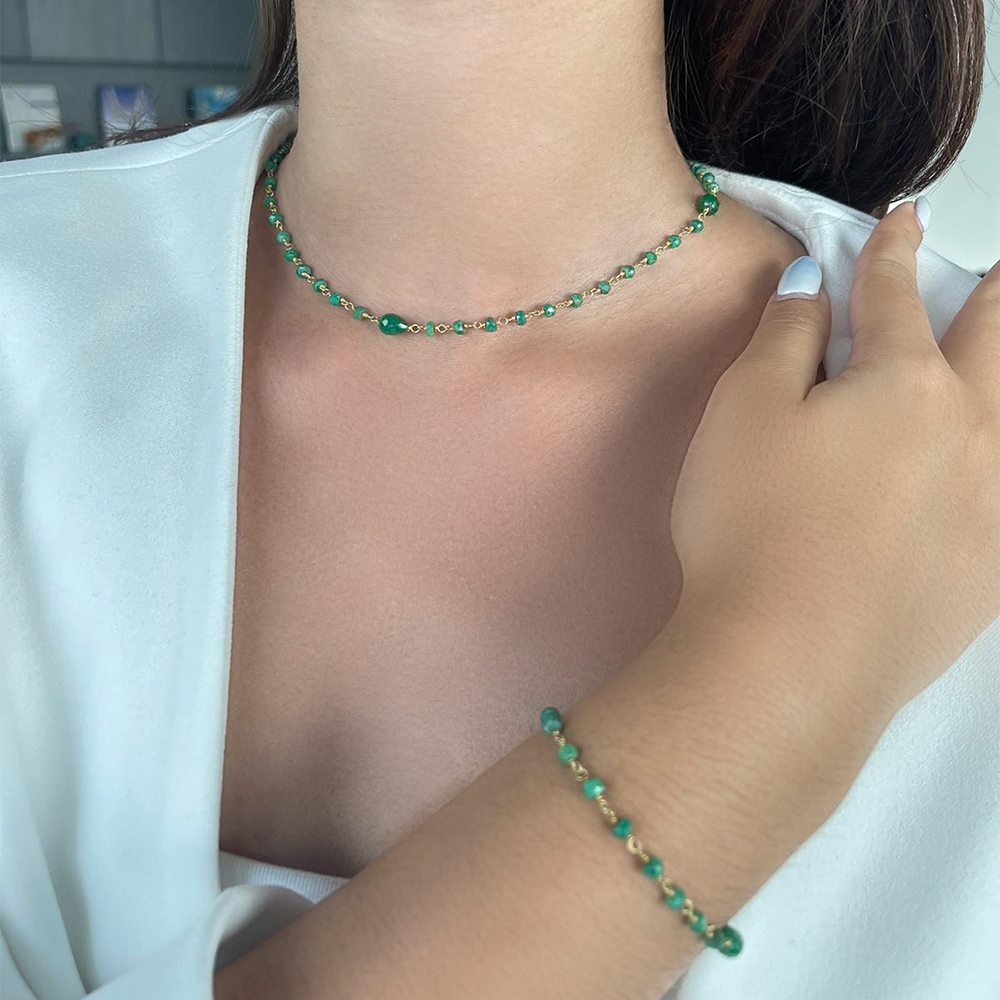 Σετ κολιέ και βραχιόλι με σμαραγδίτες σε ασημένια αλυσίδα 925 - S122156