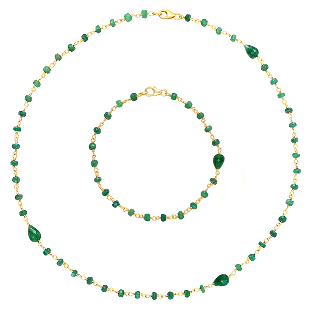 • Ένα υπέροχο σετ με κολιέ και βραχιόλι με σμαραγδίτες σε επιχρυσωμένη αλυσίδα από ασήμι 925. Το κολιέ αποτελείται από: