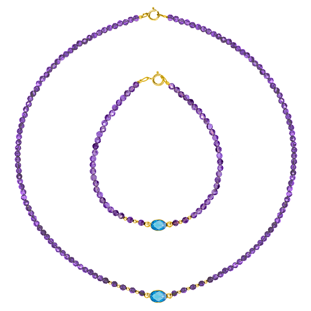 Σετ κολιέ και βραχιόλι με χρυσά στοιχεία Κ14, αμέθυστο και blue topaz - F124147SB