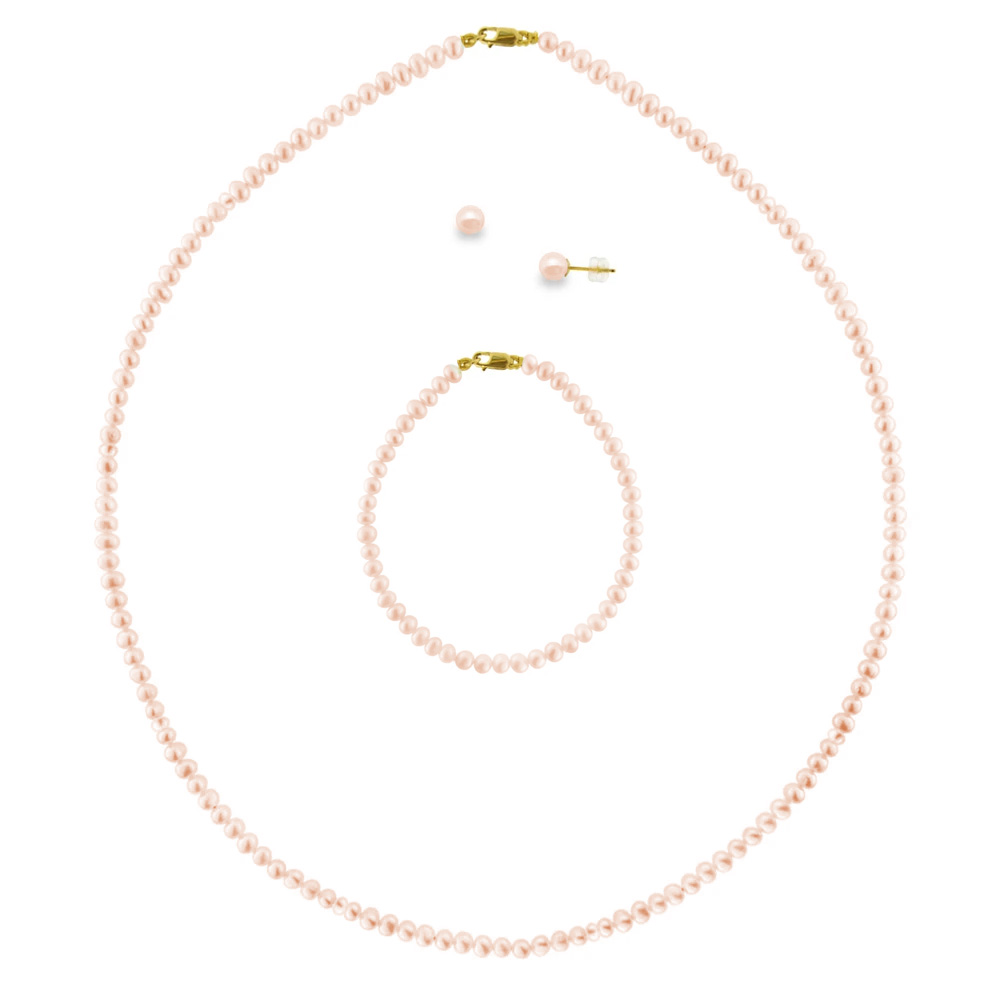 Σετ κολιέ, σκουλαρίκια και βραχιόλι με Κ14 χρυσά στοιχεία και λευκά μαργαριτάρια - M990034S