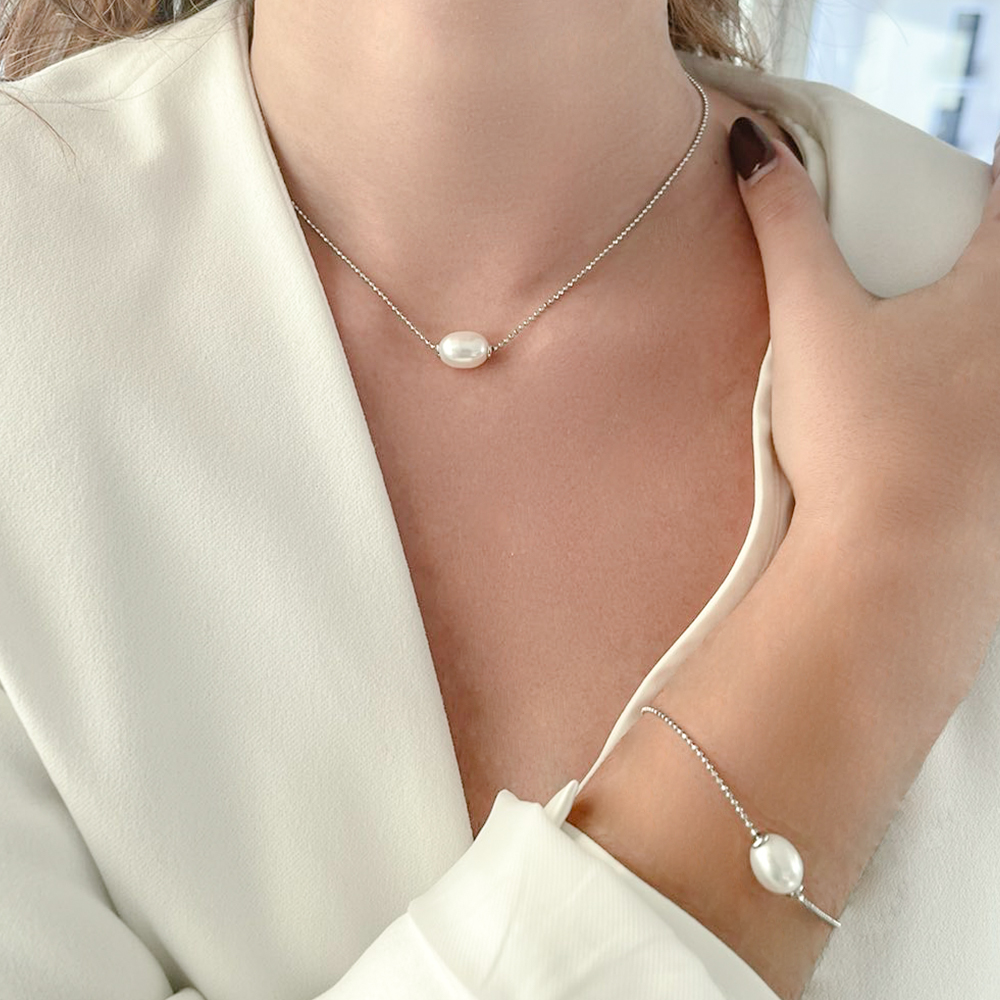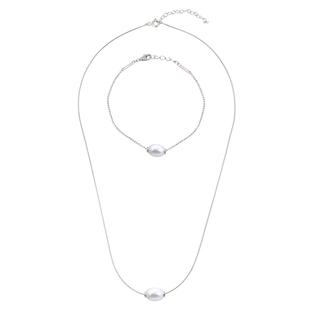 Σετ κολιέ και βραχιόλι με λευκά μαργαριτάρια σε ασήμι 925 - S125253