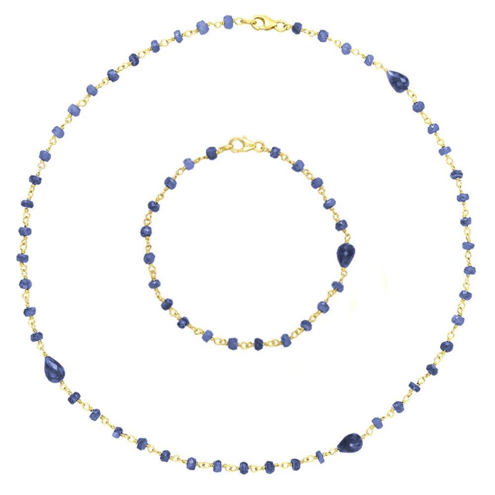 • Ένα υπέροχο σετ με κολιέ και βραχιόλι με ζαφειρίτες σε επιχρυσωμένη αλυσίδα από ασήμι 925.