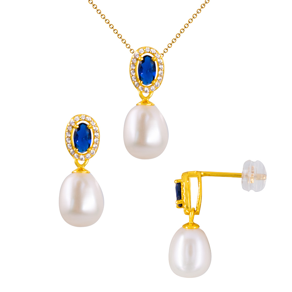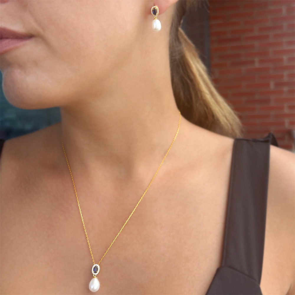 Σετ κολιέ και σκουλαρίκια 925 επιχρυσωμένο με μαργαριτάρια και ζιργκόν - S126080S