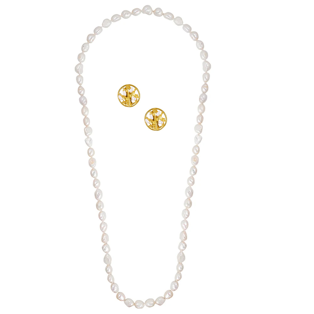 Νέο -16% Σετ κολιέ & σκουλαρίκια με λευκά μαργαριτάρια και βάση από ατσάλι - S1252289