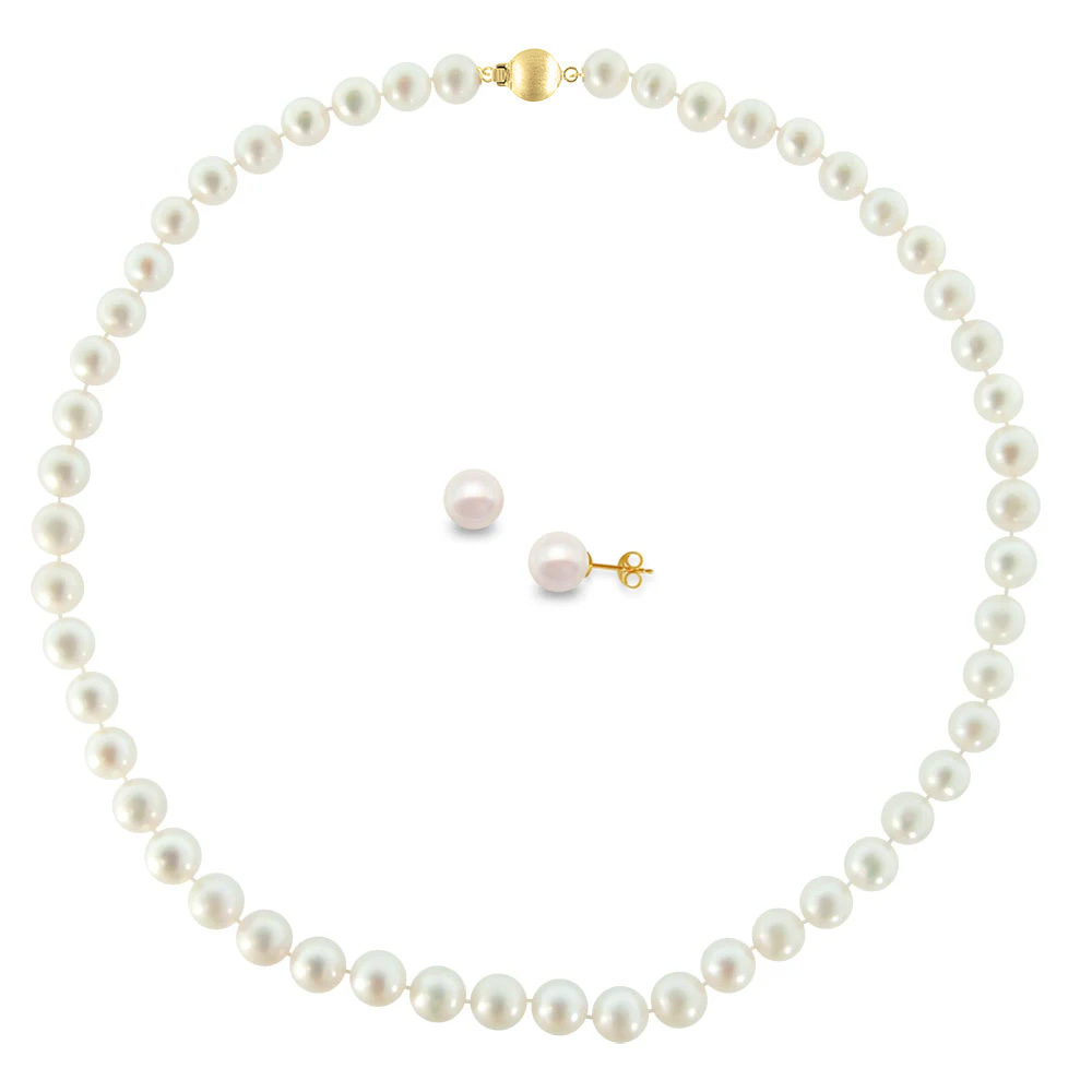 Σετ κολιέ και σκουλαρίκια Κ14 χρυσό με λευκά μαργαριτάρια 8-9 χιλιοστών - S125996