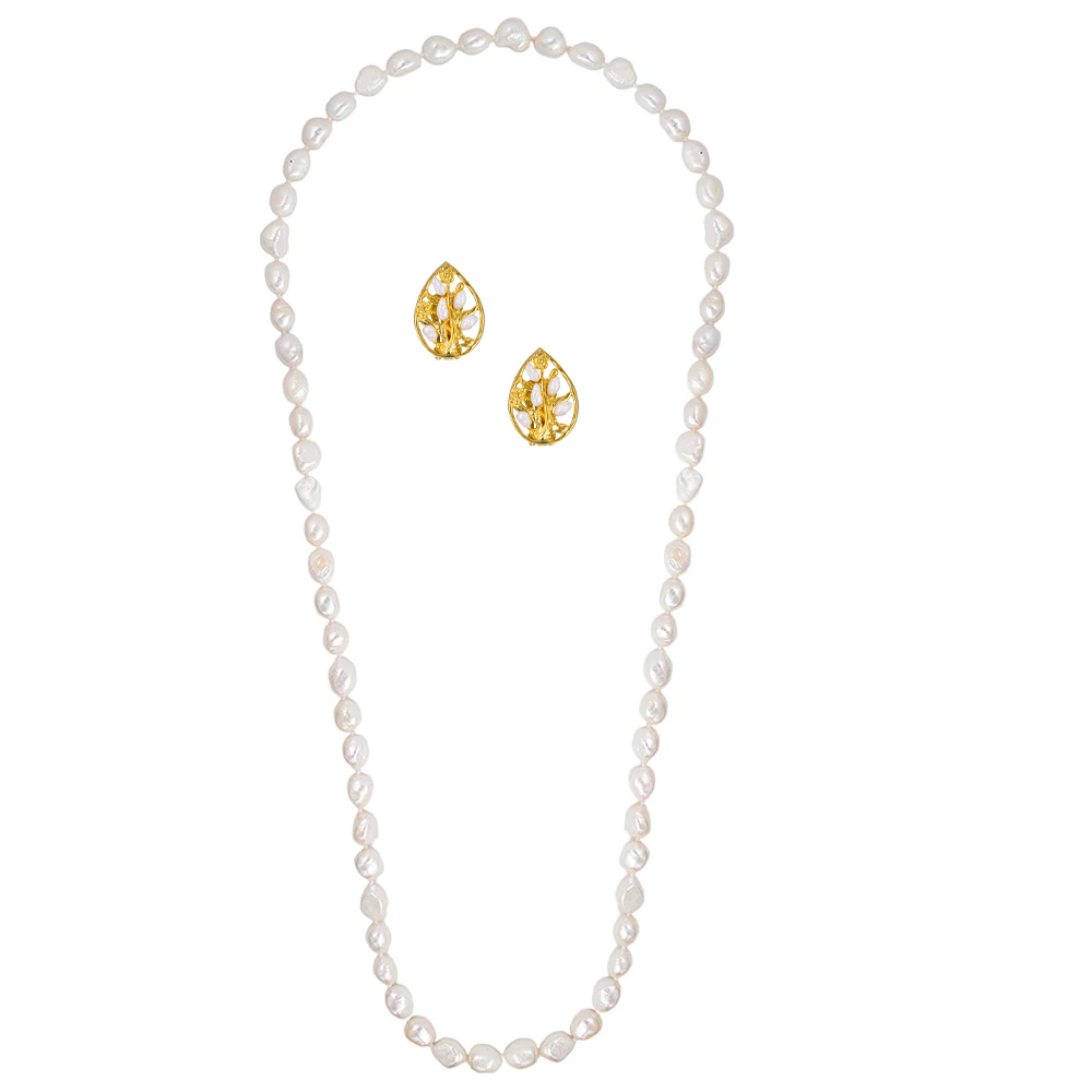 Νέο -15% Σετ κολιέ & σκουλαρίκια με λευκά μαργαριτάρια και βάση από ατσάλι - S1252290