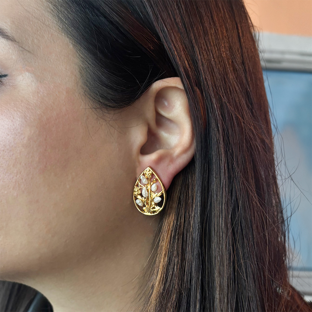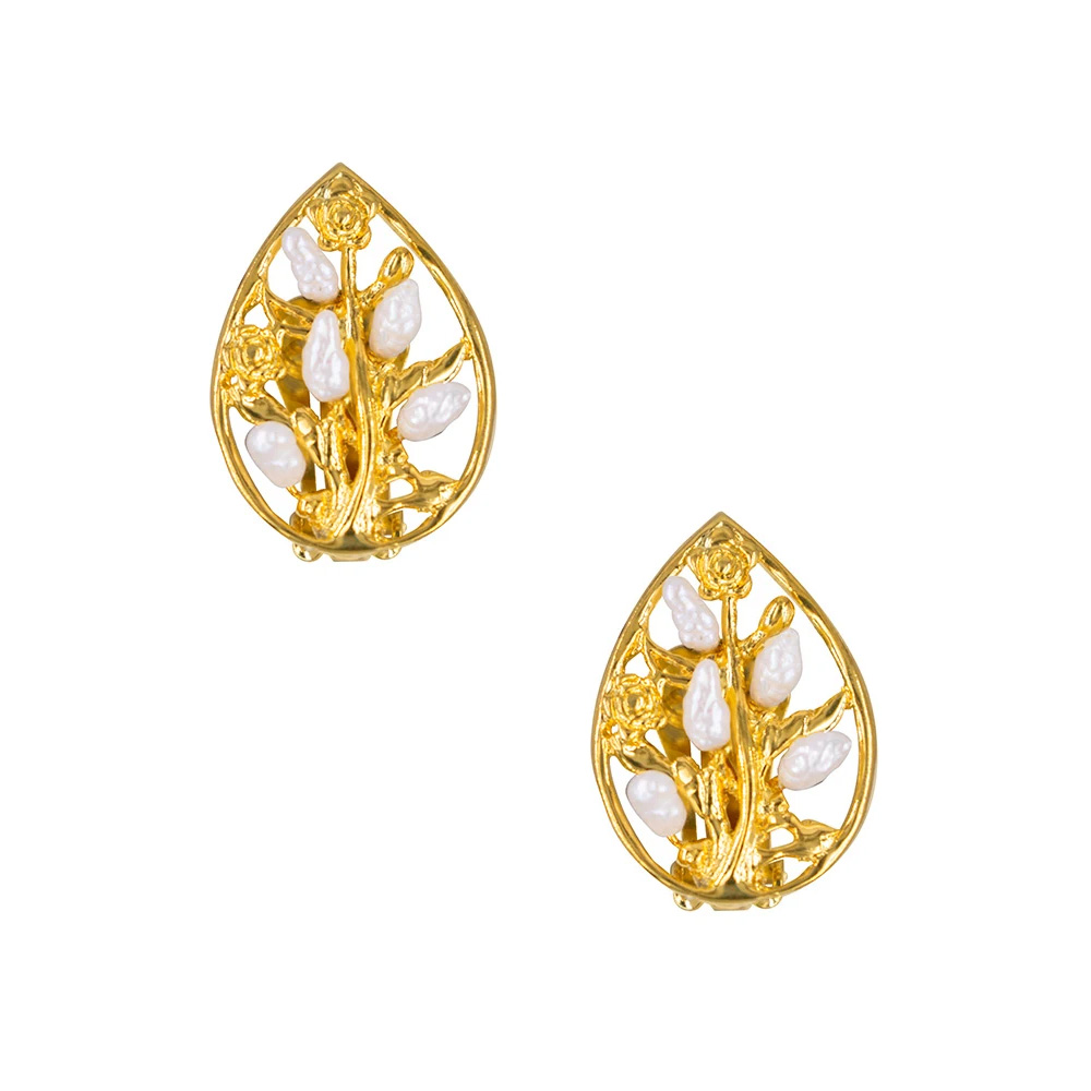• Ένα ζευγάρι χειροποίητα σκουλαρίκια με 10 λευκά μαργαριτάρια Fresh Water Pearl διαμέτρου 3x4 χιλιοστών, με ιδιαίτερους ιριδισμούς. Η βάση των σκουλαρικιών είναι από ατσάλι και σχηματίζουν σκαλιστά λουλούδια. Η συνολική διάσταση είναι 3x2 εκατοστά και είναι ιδανικά για γυναίκες που δεν έχουν τρυπημένα αφτιά καθώς είναι με κλιπ.