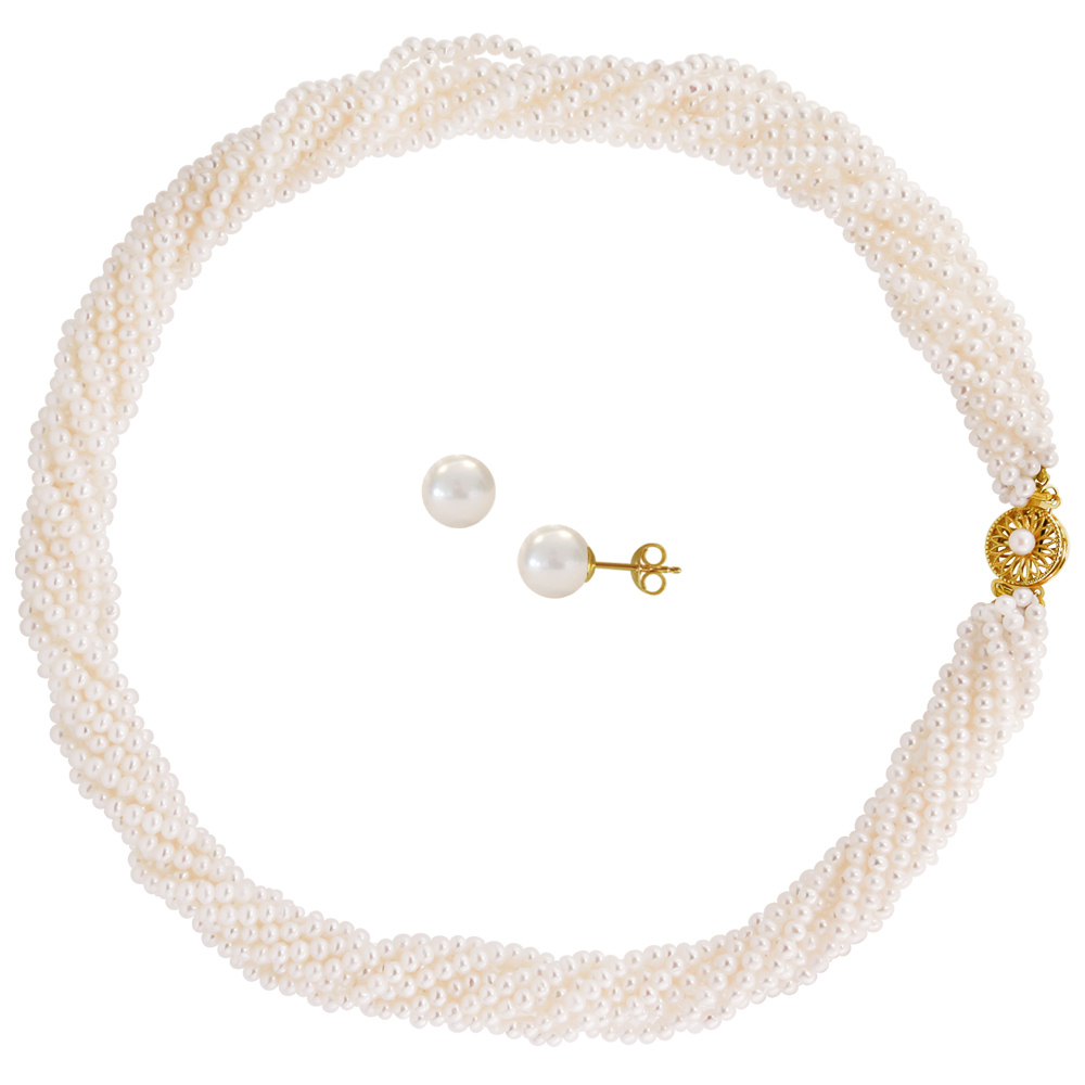 Σετ κολιέ και σκουλαρίκια σε Κ14 χρυσό με λευκά μαργαριτάρια - M990054